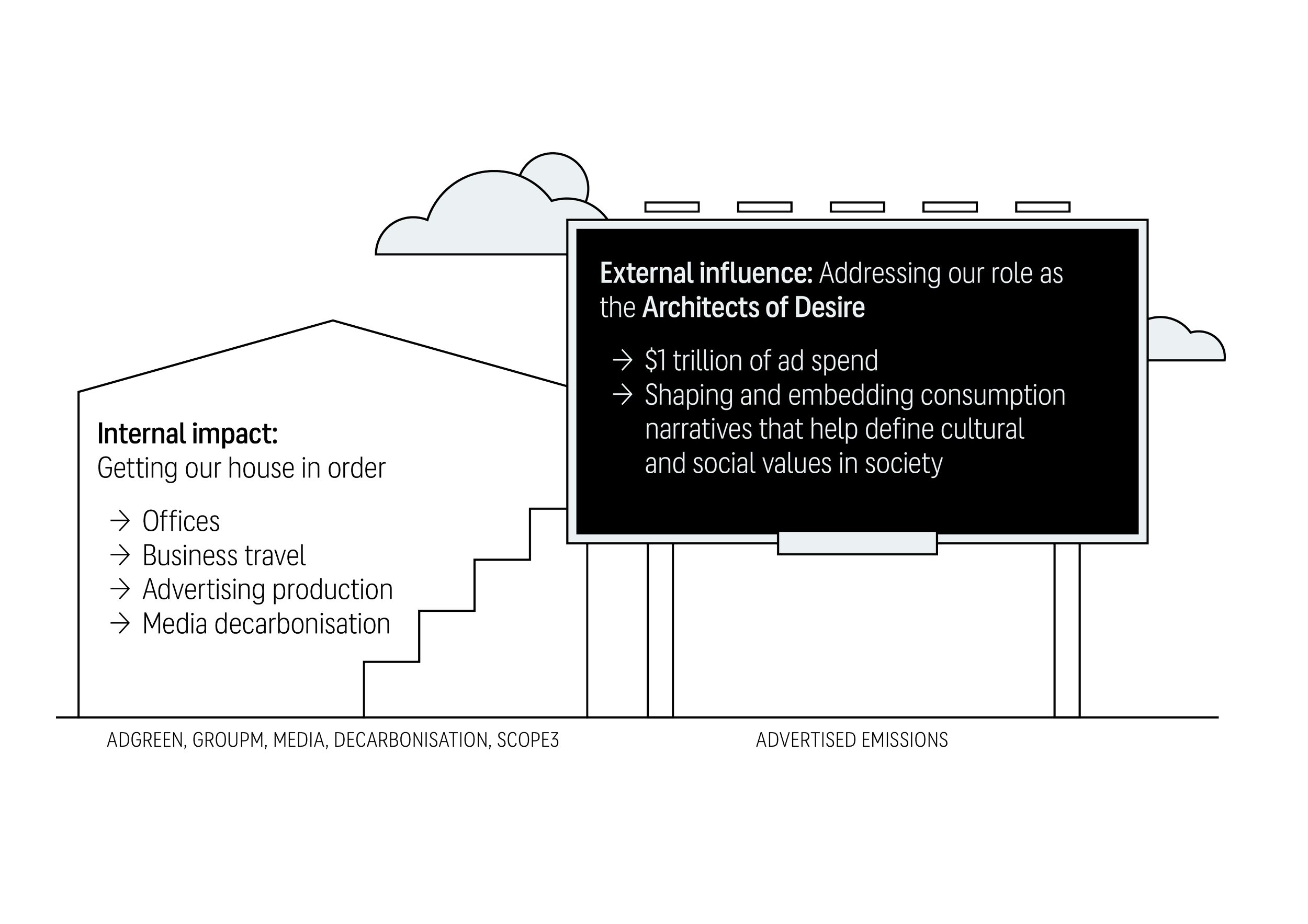 Serviced Emissions, a related concept for the professional services sector, was introduced at COP28 — positioning advertising alongside law, consulting, and finance as sectors needing urgent change. Serviced Emissions are “the greenhouse gas emissions arising from the activities of a client informed and/or enabled by the advice and/or services of a professional service provider (PSP)”