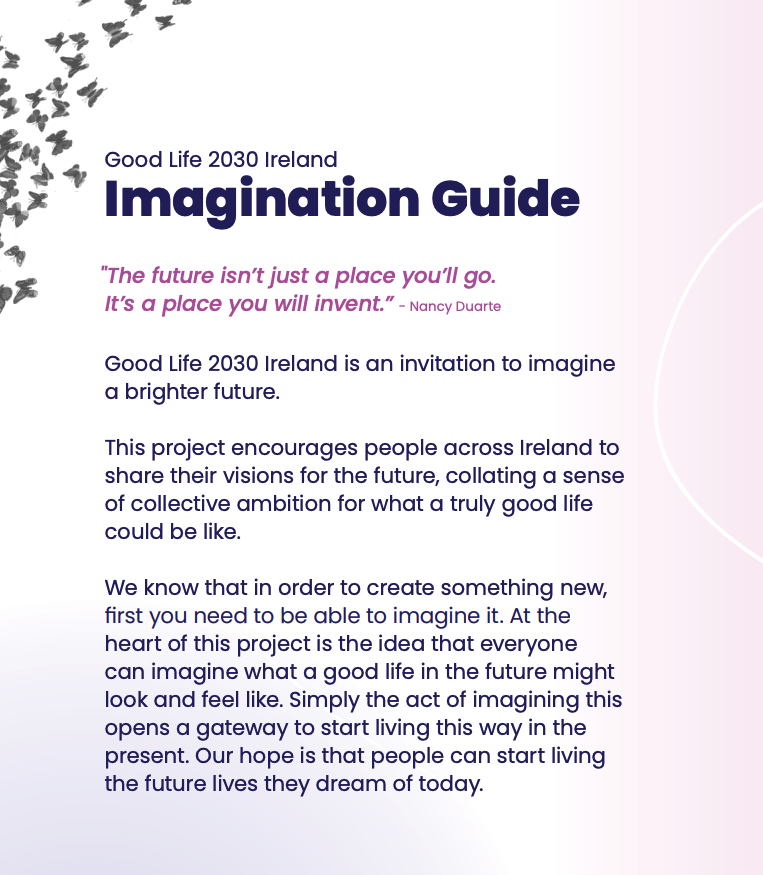 We are inviting people across Ireland to share their vision of a Good Life in the future. These may be used in the creative materials in future campaigns, and across all media.